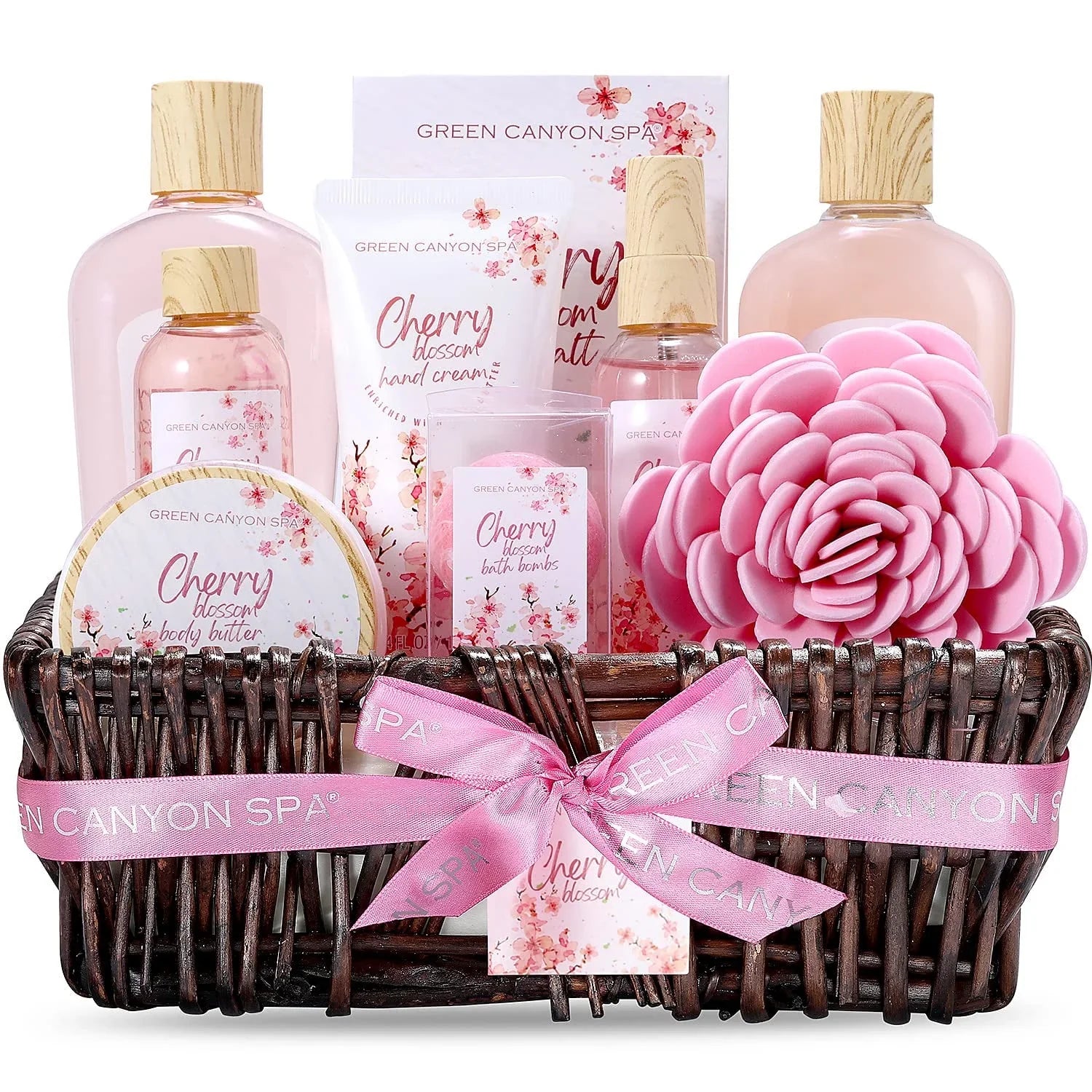 Spa Gift Baskets for Women, 10 Pcs Cherry Blossom Bath and Body Sets, Luxury Birthday Day Body Care Gift Sets for Her